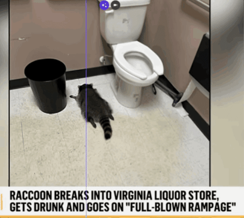 A raccoon in Virginia fell through a liquor-store ceiling, raided the whiskey, wrecked half the shop before passing out in the bathroom. Police described him as “unconscious and uncooperative.” before placing him in cuffs.